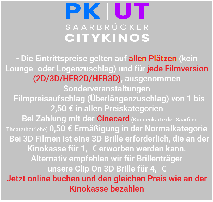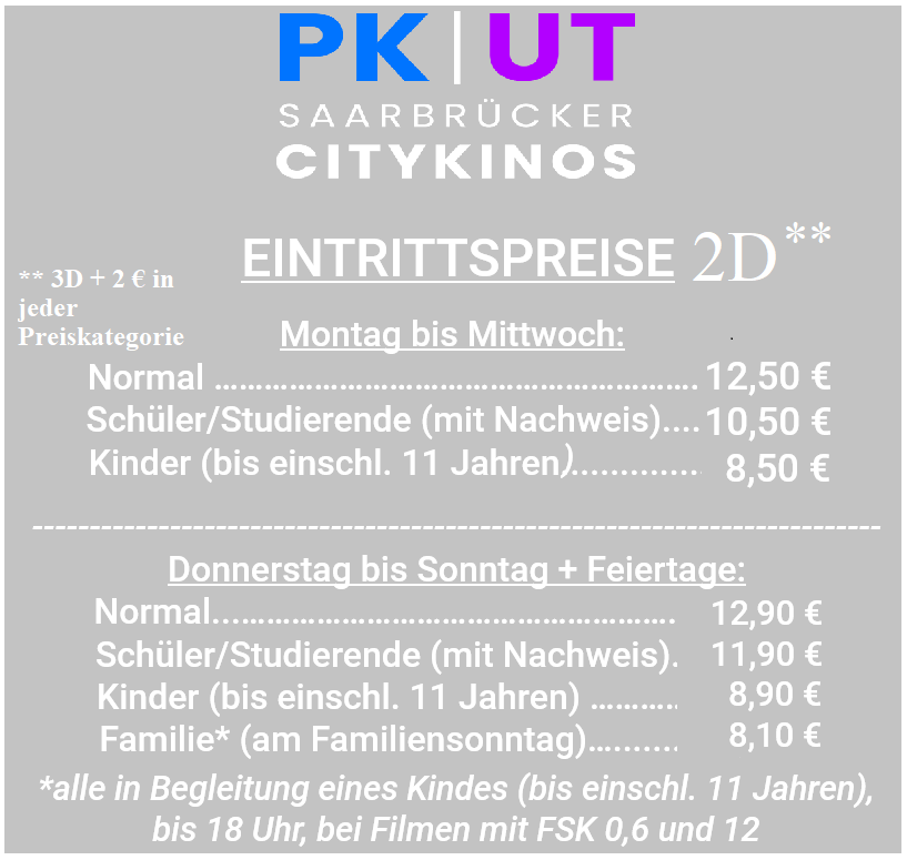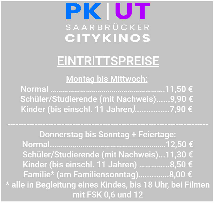 EINTRITTSPREISE PASSAGE- und UT-KINOS